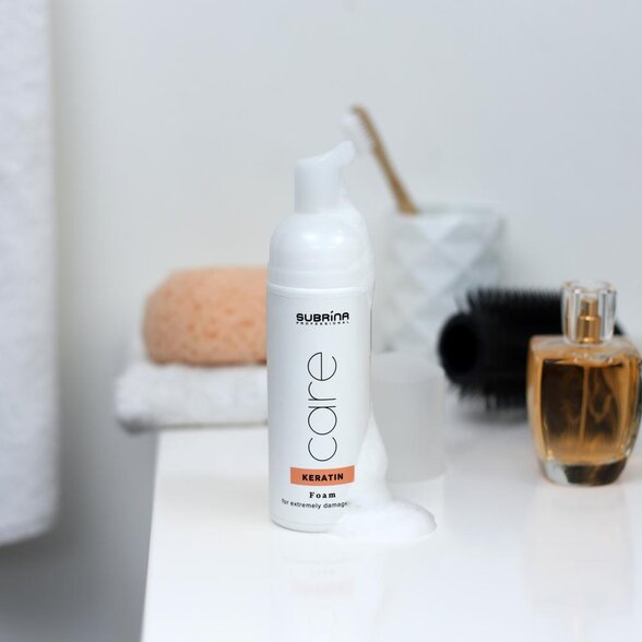 Bezoplachová výživná pena, ktorá preniká do poškodených vlasov silnou dávkou keratínu, ktorý vlasy r...