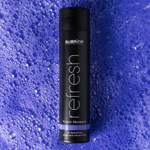 Hľadáte spoľahlivý silver šampón, ktorý skutočne funguje a zároveň nezaťažuje vlasy? Subrina šampón z radu Refresh Violet je profesionálny fialový šampón na vlasy, ktorý bol vyvinutý na efektívnu neutralizáciu nežiaducich žltých a teplých odtieňov. Vďaka modernému zloženiu a vyváženému pomeru pigmentov funguje ako vysoko účinný tónovací šampón na vlasy, ktorý obnovuje čistotu farby a dodáva vlasom svieži, studený nádych.