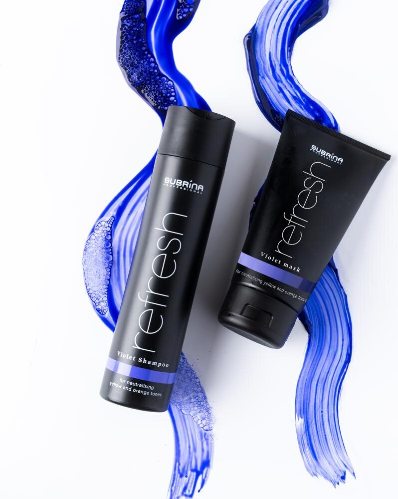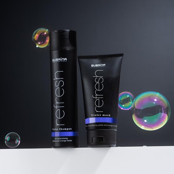 Pre ešte výraznejší a dlhodobejší výsledok odporúčame kombinovať fialový šampón na vlasy s Violet maskou z radu Subrina Professional Refresh Violet, ktorá prehlbuje tónovací efekt a zároveň poskytuje intenzívnu výživu vlasom. Táto kombinácia je ideálna najmä pre blond, melírované alebo sivé vlasy, ktoré potrebujú nielen neutralizáciu, ale aj regeneráciu.